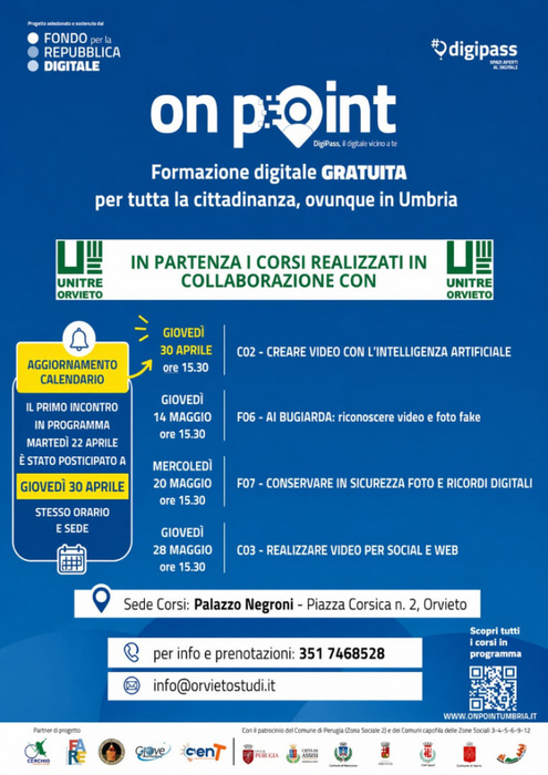 La Fondazione CSCO presenta “On Point”, quattro incontri gratuiti a Orvieto dedicati a IA, sicurezza e video making. Un percorso pratico aperto a soci UNITRE e cittadini per padroneggiare gli strumenti della trasformazione digitale.